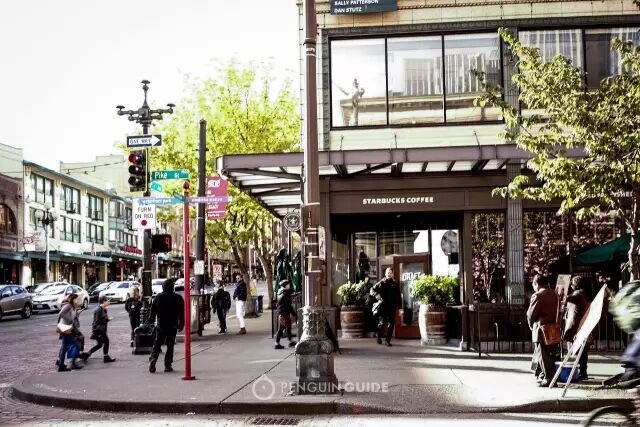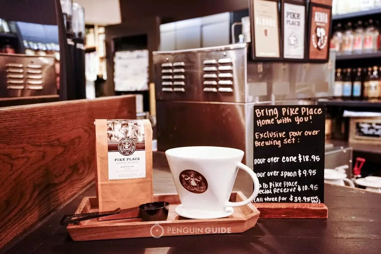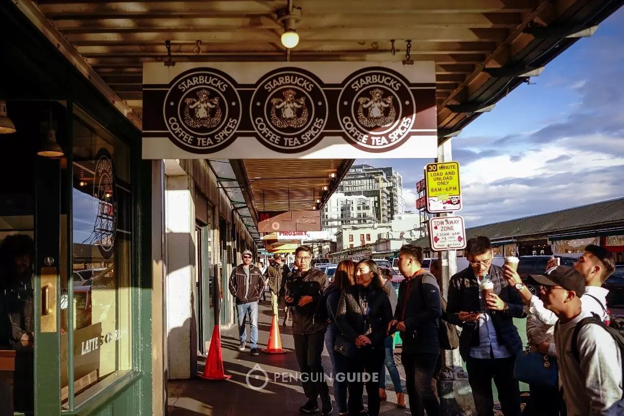 穿过派克市场的鲜花、水果和海鲜摊位,无视路边小餐馆里,厨师从大铁锅里倒出的满满一盆帝王蟹、蛤蜊、大虾和青口贝,再排除手工芝士和俄式面包的香气干扰,你才能在派克市场临海的一面,找到这家不起眼的星巴克小店。