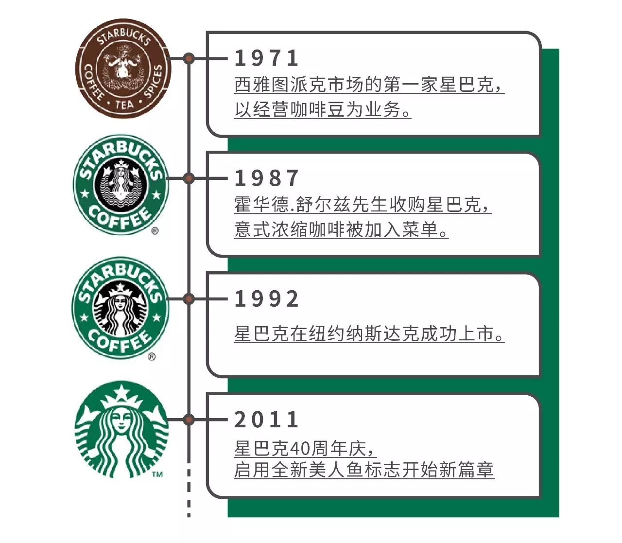 星巴克诞生至今40余年,在全球拥有超过25000家门店,覆盖75个国家,而门店数目还在以平均每天2家的速度增长。每一天,有30万名穿着绿围裙的咖啡师在吧台后忙碌,消耗掉10万公斤咖啡豆和90万升牛奶,制作出上百万杯咖啡,倾入印有绿色美人鱼logo的杯子,并为这个庞大的商业帝国创造出五千多万美元的日均销售额。