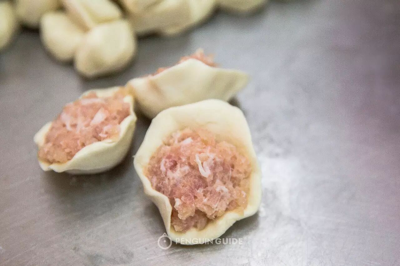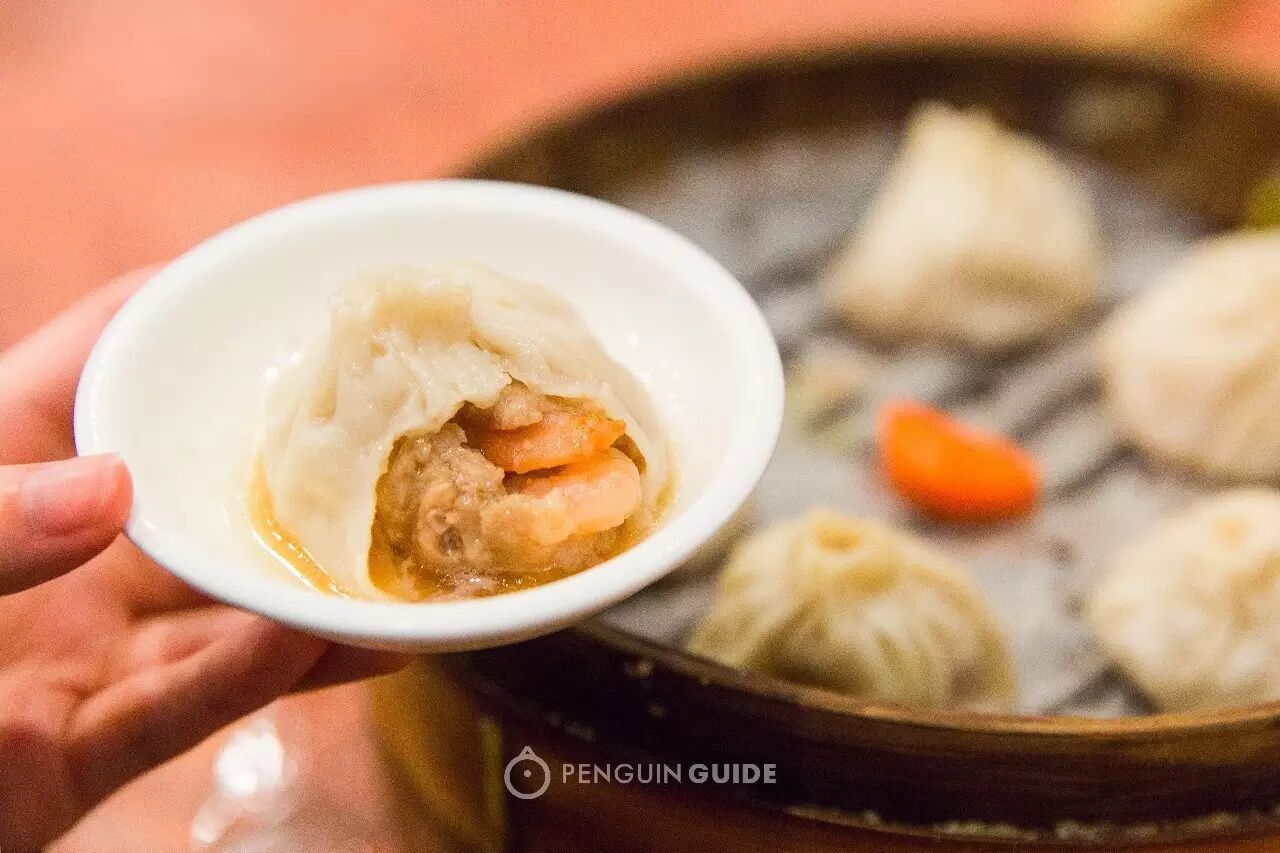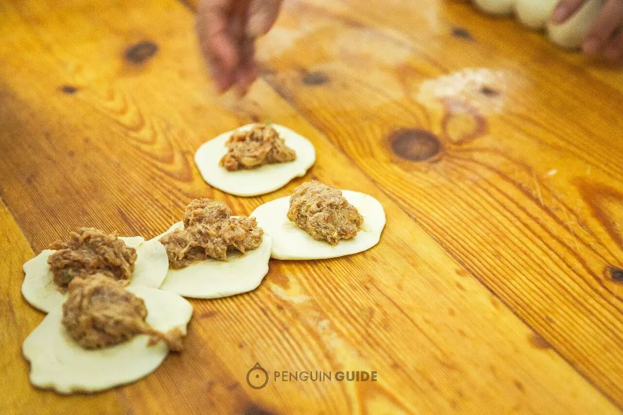 东泰祥只做鲜肉和虾仁两种馅料,而馅皮属于介于不发酵和全发酵之间,吃起来有微妙的酥感。