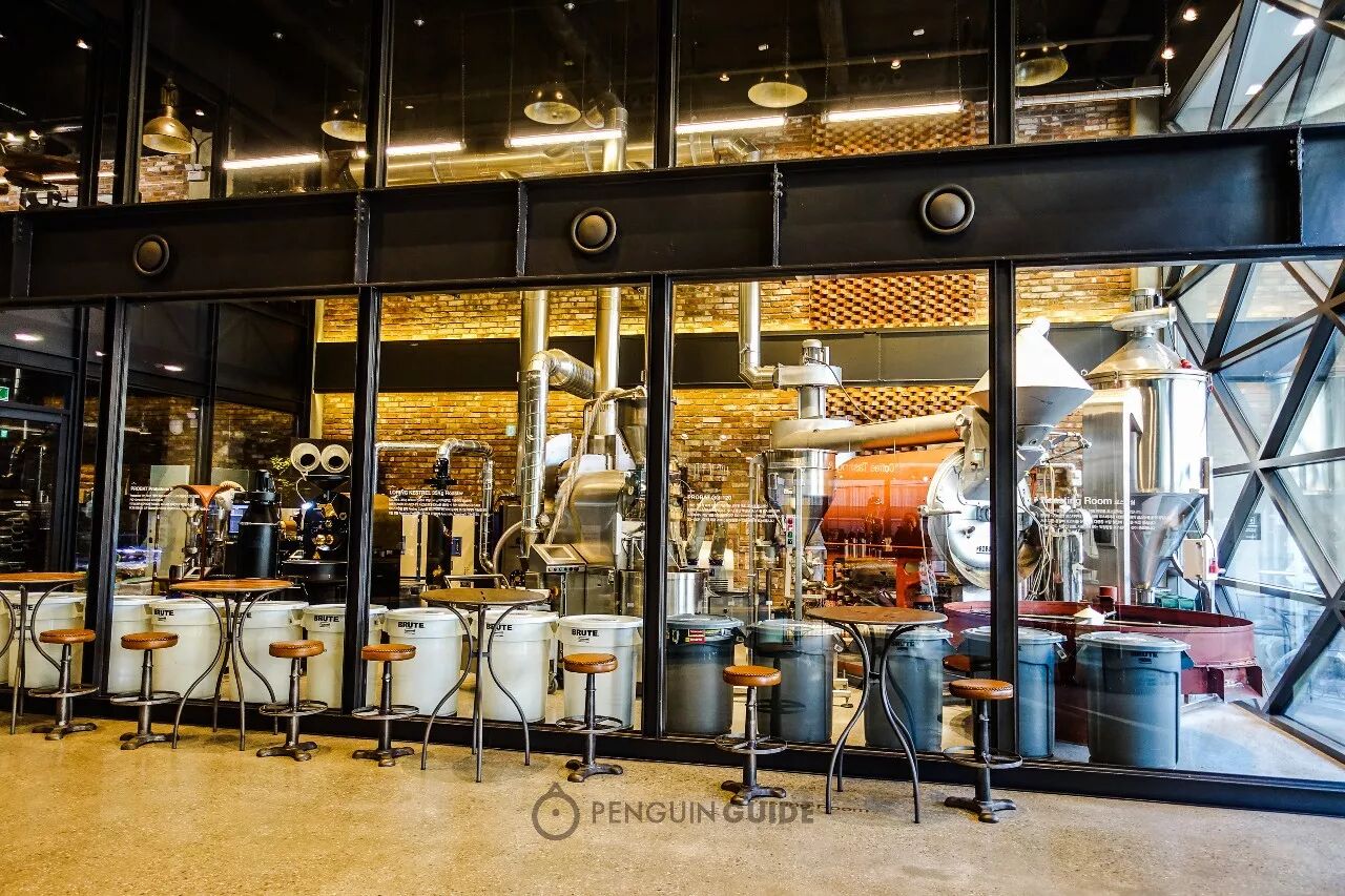在首尔,“自家烘焙,前店后厂”模式的咖啡馆不少。我们去了老牌烘焙商EI CAFE,烘焙方式比较传统,相较而言下面这两家有更多选择也更有趣。