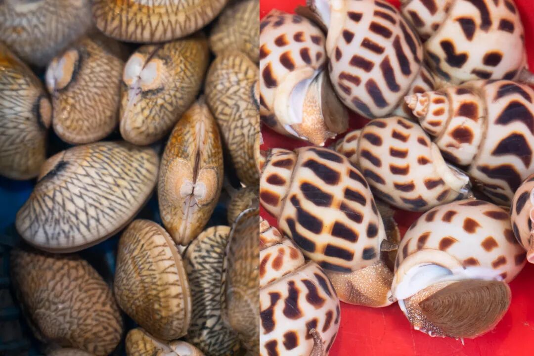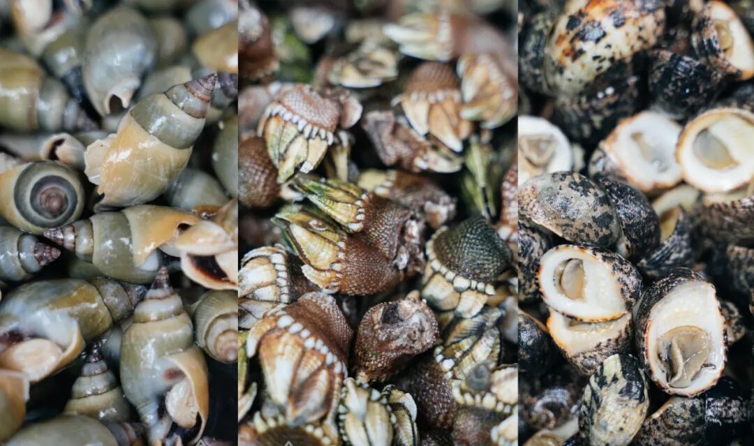 螺类像是海洋版玉石展览,纹理质地,十色斑斓,令人着迷:碧绿如翠,状若佛手,墨玉上遍布斑驳……