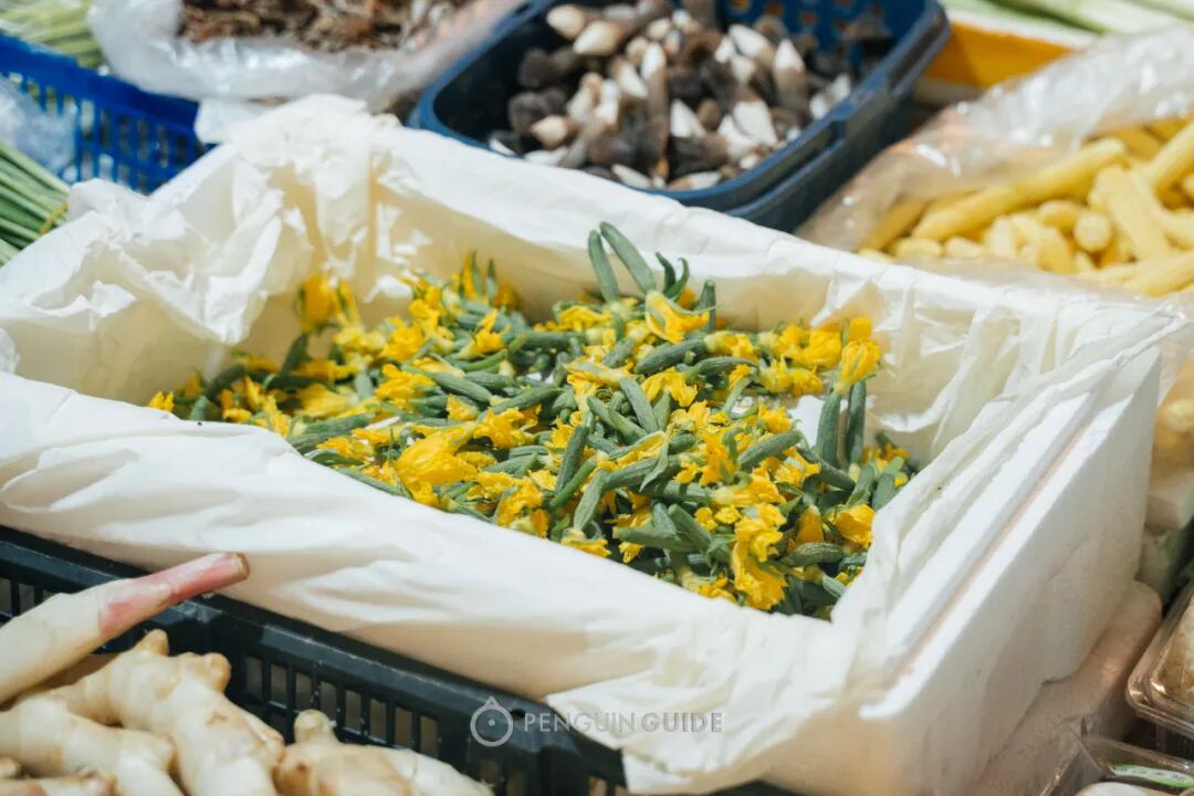 看完海鲜,来看看蔬菜摊:不得不感叹,沿海人民的审美意识真的很棒。连蔬菜摊主,都有极强的货架陈列意识:
