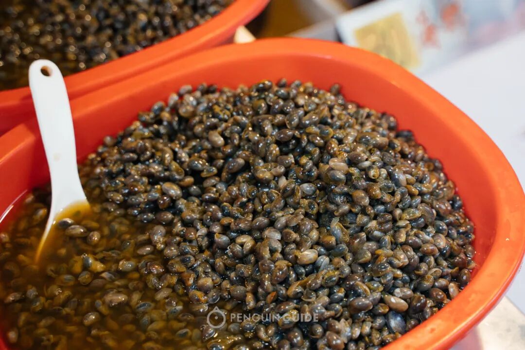 腌泥螺也是沿海地区的家常粥配,轻轻一嗦,仿佛含了一颗浓缩的海味炸弹,带着微妙的金属气息。开胃程度,堪称沿海小榨菜。