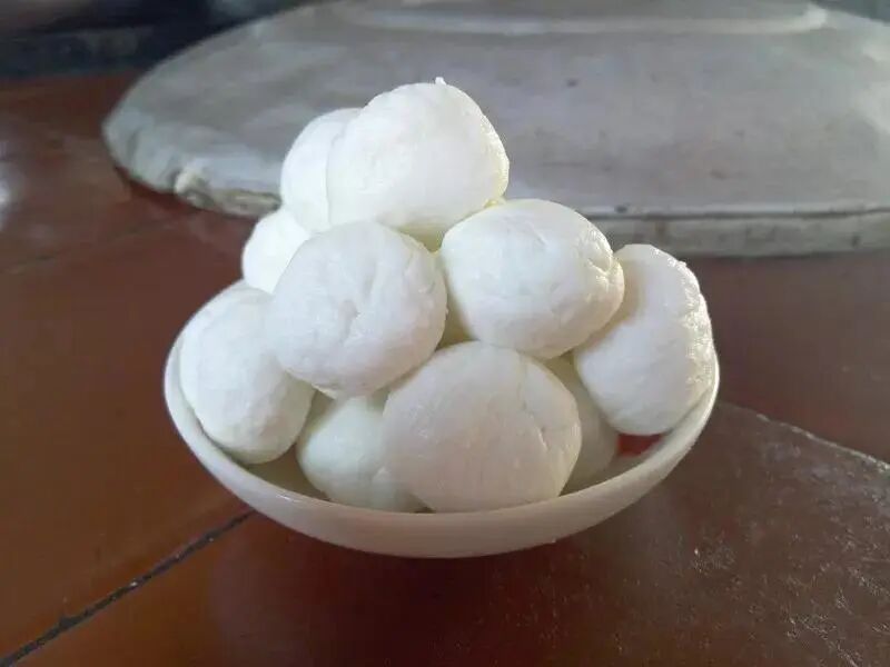 这是水牛奶加醋凝聚后,盐腌而成的……害!不就是中式的莫扎里拉奶酪球嘛!