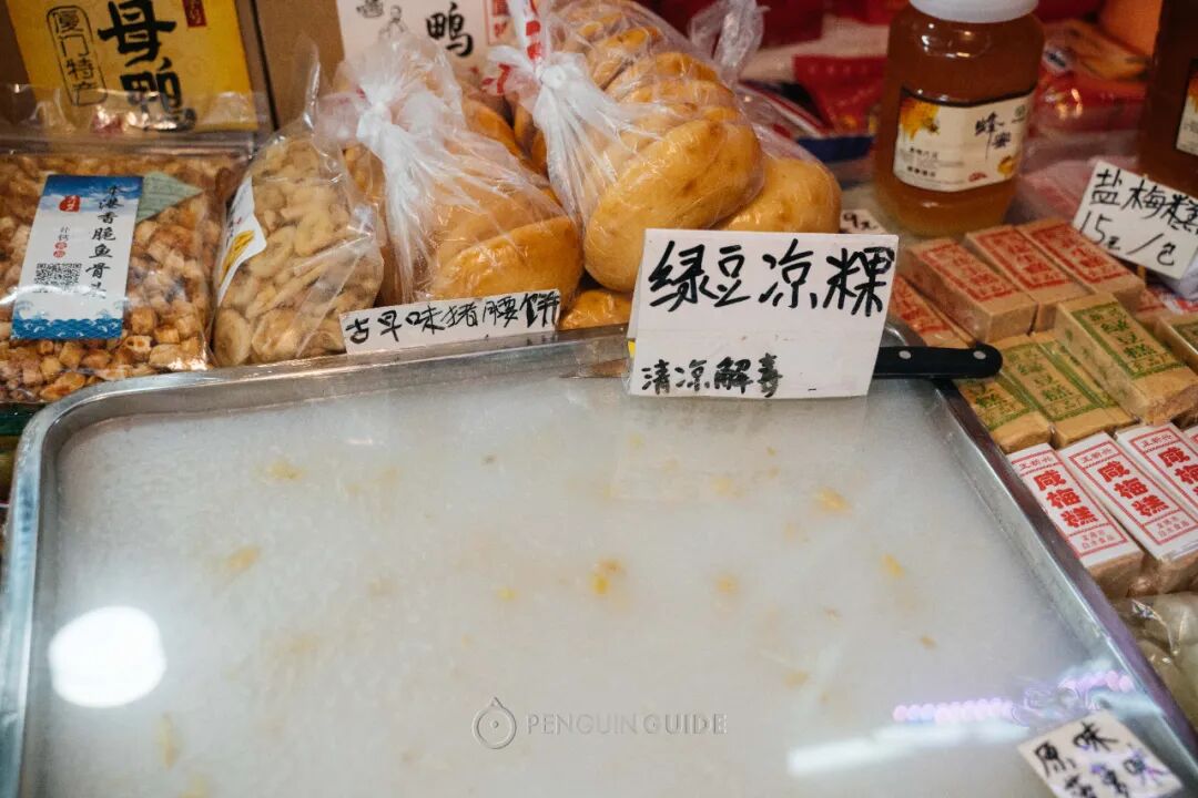 再往对面,不少小店的冰柜里,能找到绿豆冰沙。闷热的夏天带它逛市场,非常解暑!