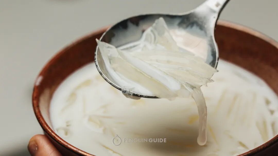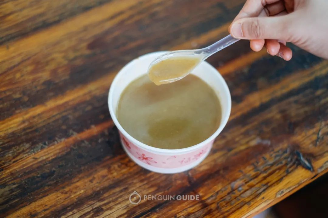 店家心情好,还会塞给你一把刮刀,把做好的石花冻刮成条状,就是闽南甜品四果汤的基础小料,加点糖水或牛奶,怎么都好吃!