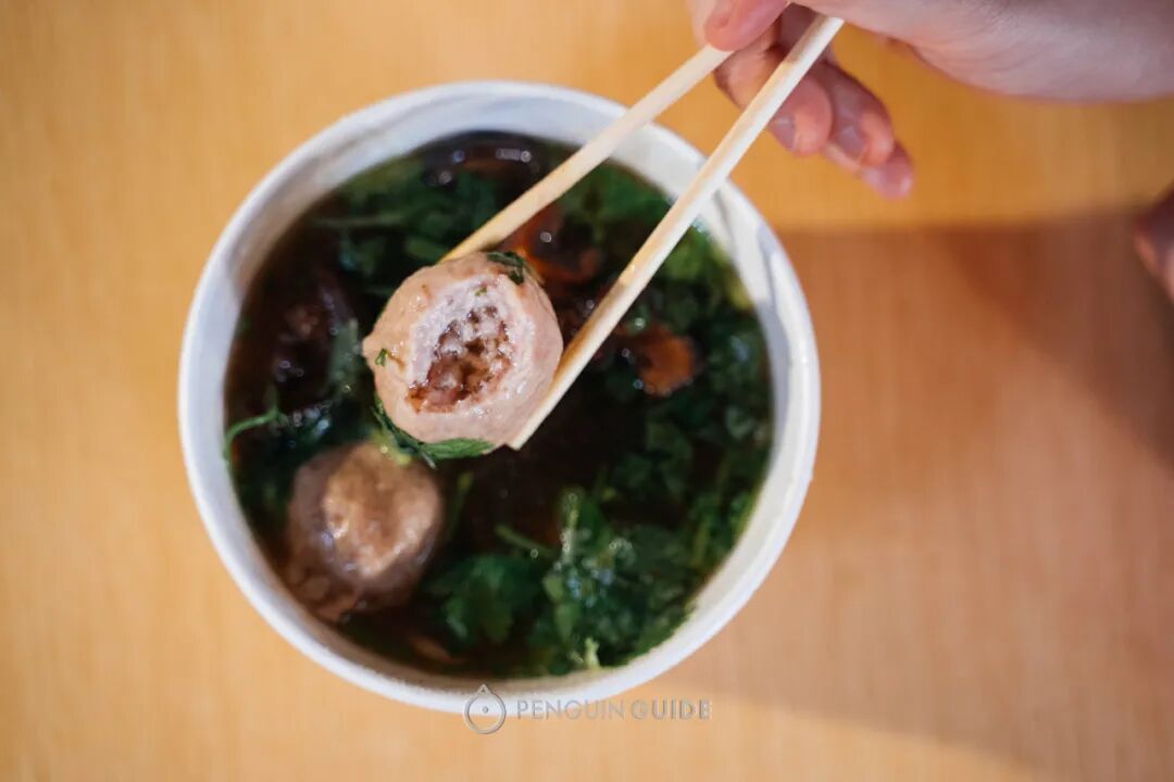 老板会推荐加一份丸子……听他的!皮薄馅香,一汪肉汁在口中回转跌宕。