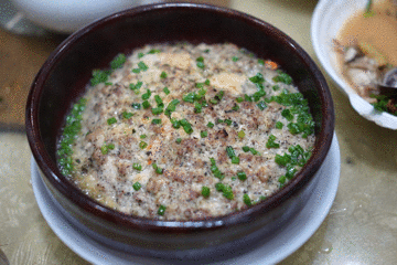 现在区分道滘肉丸粥的标志,是一把油散(油炸粉丝),在绵绵的粥底里更显酥脆。