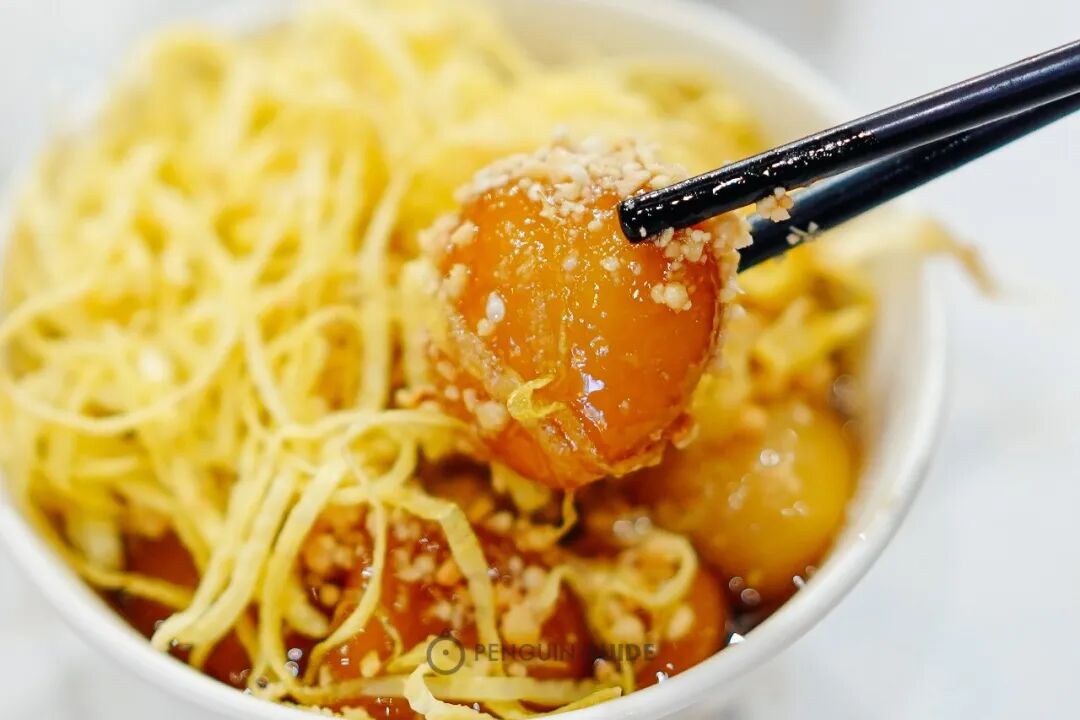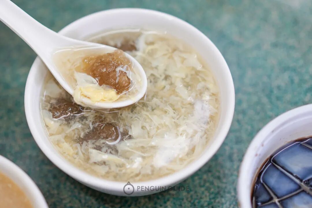 还有红薯鸡蛋糖水,红薯不是番薯,指的是用红薯粉做的颗粒!跟芋圆一样弹韧有嚼劲。