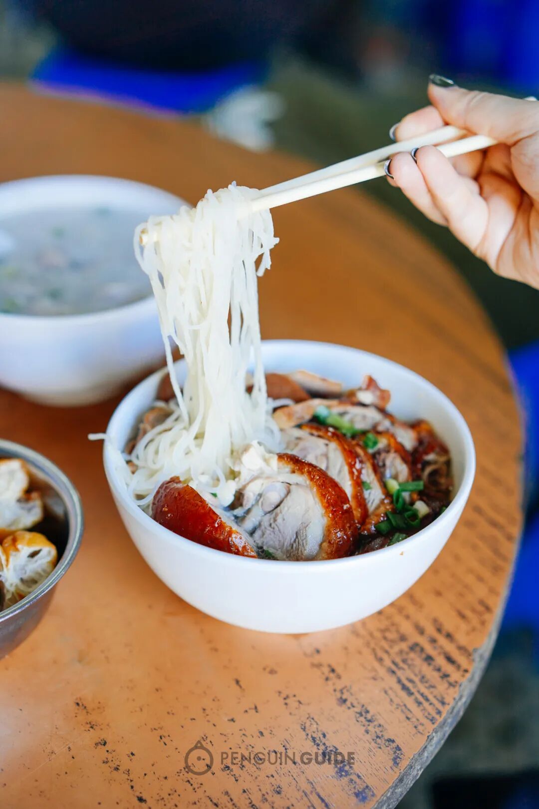 @冠群饮食店,盖满烧鹅和叉烧的汤米粉,一碗只要10块。(物价让人猛虎落泪