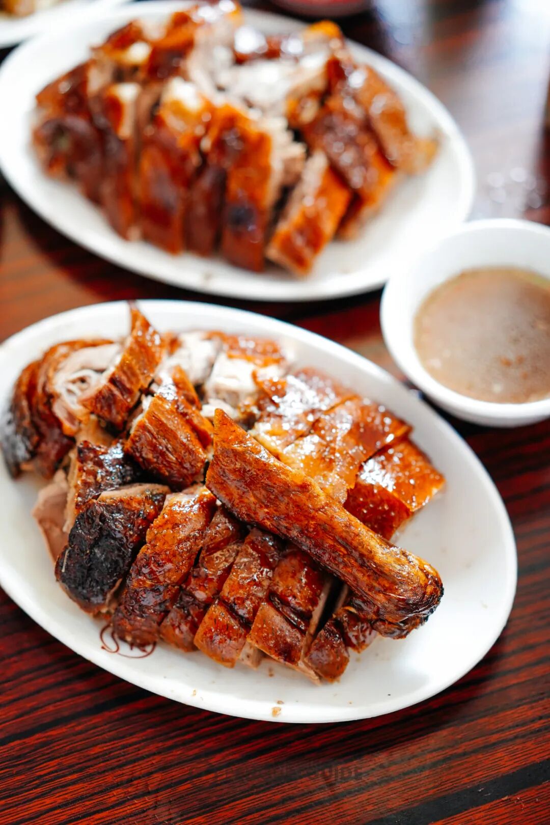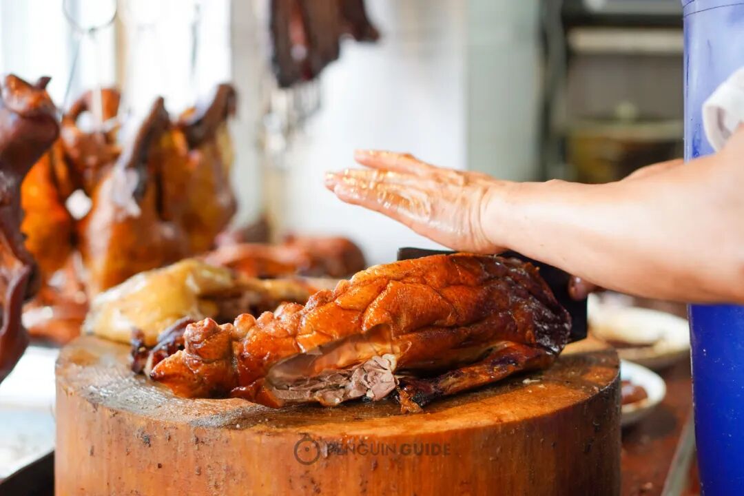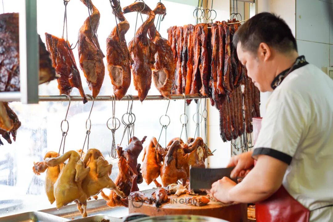 所以,当地人喜欢的老字号有个共同特点,都是前店后厂模式,加上人气高,食客不断,不管什么时候去,总能吃到新鲜热辣的烧鹅。