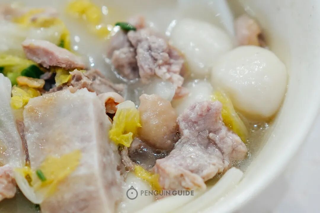 看着清汤寡水,其实底下藏着瘦肉片、鸡肉、白菜、芋头等等,食材很丰盛。