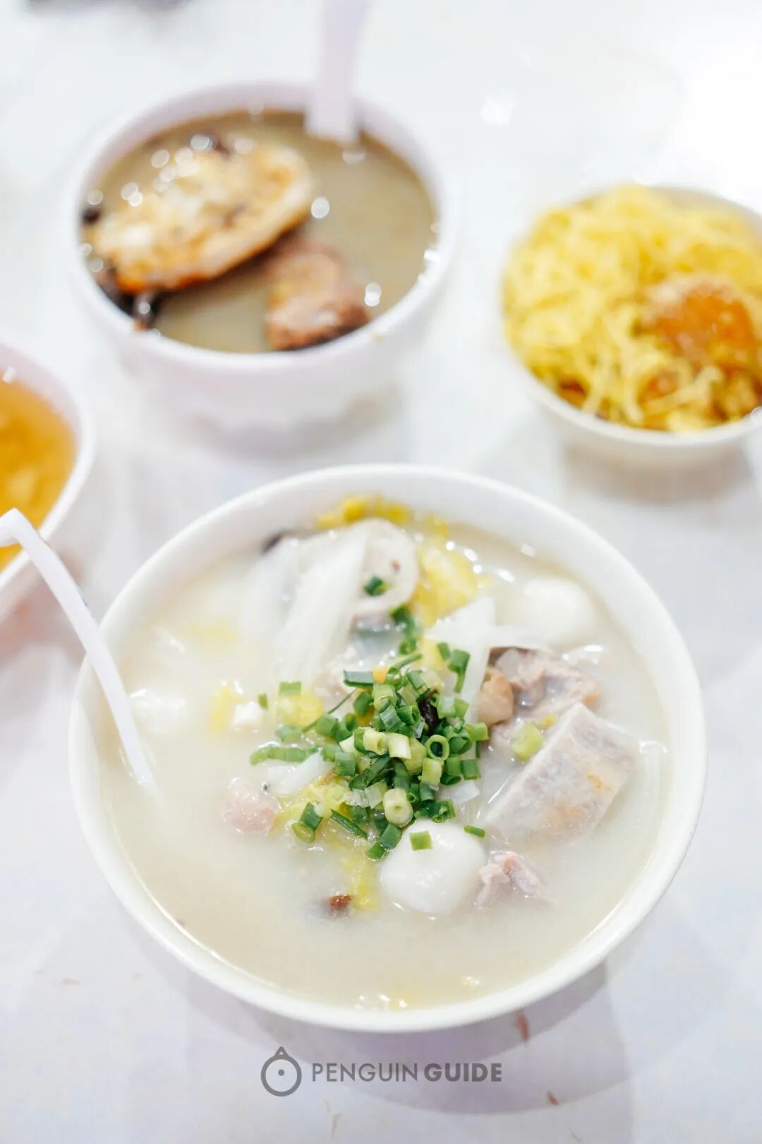 粥底本身下了猪骨吊底味,再加肉丸粉肠叉烧鱼片……咸鲜翻倍。