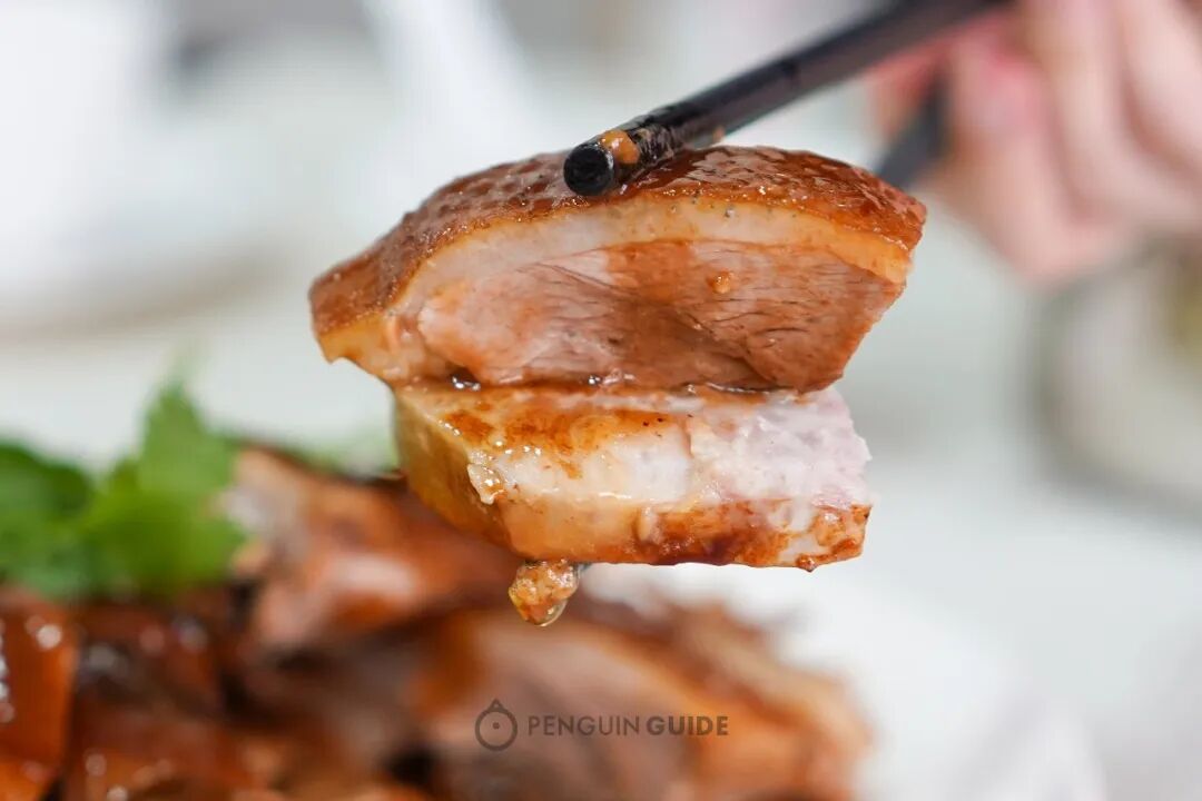 所谓「碌」,是一种烹饪技法,让鹅反复在锅里翻滚,均匀上色入味。高温逼出鹅皮的油脂,浮起一层澄清的鹅油,被又粉又绵的香芋吸收了,完美互补。