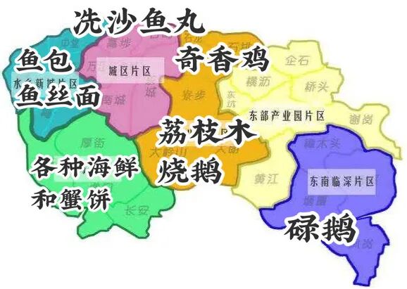 你看,东部和中部吃的都是鸡鸭鹅,到西部,就开始有海鲜河鲜啦~
