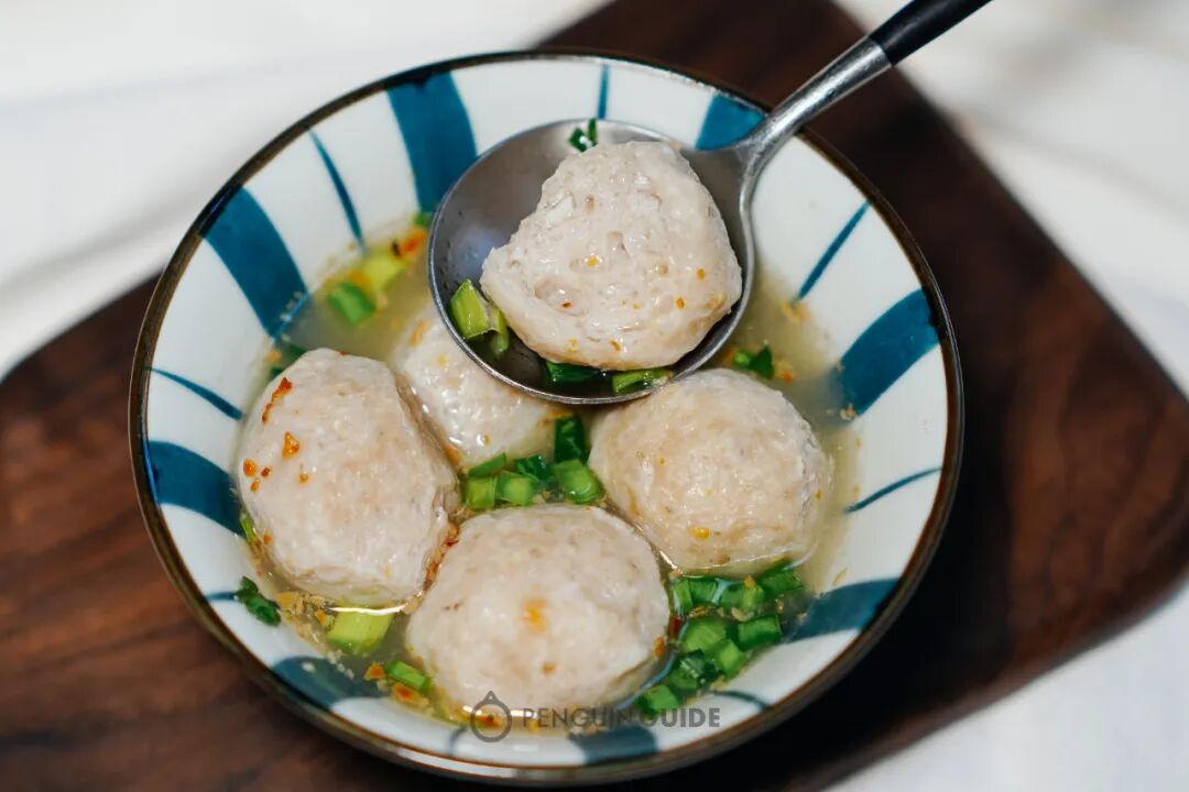 刮下来的鱼肉,经过人力反复捶打成鱼丸,就是东莞特产冼沙鱼丸了。口感弹中带韧,星点陈皮提味,一口咬下会爆汁。
