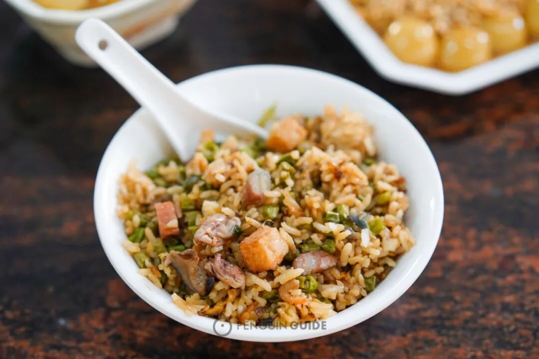 这碗叫龙船饭,传统上是用来慰劳扒龙舟的人,特点在于饭菜合一,有十几种食材堆砌出来的咸香。