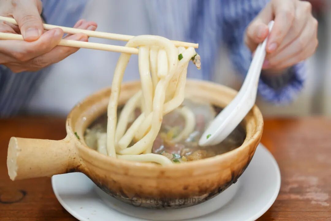 除了米制品,东莞人偶尔也会吃面。当地有一种煲仔咸面,口感很特别,堪称莞式乌冬面。