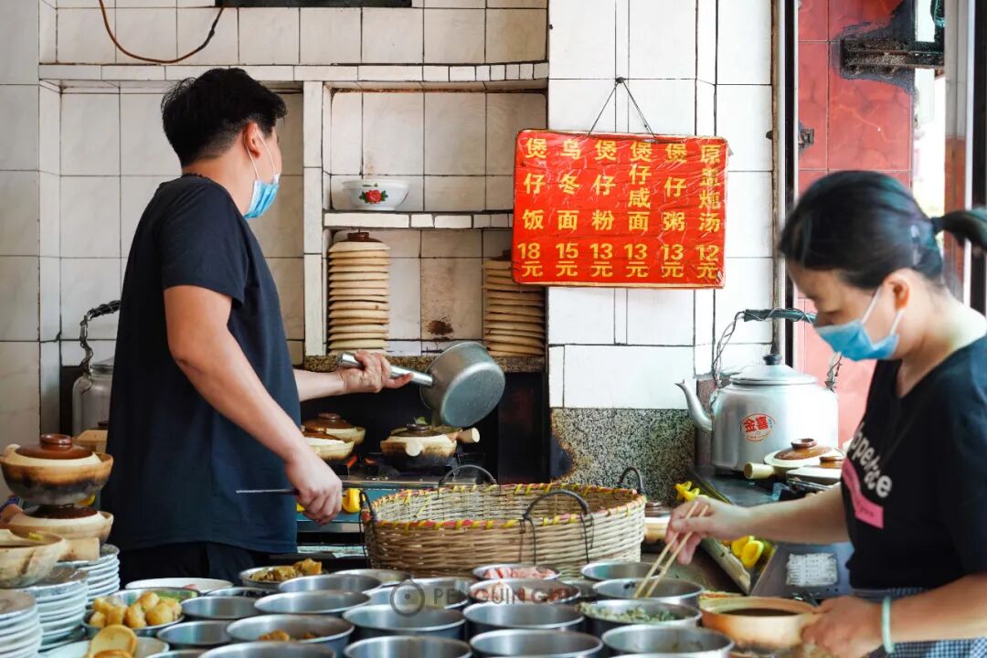如果是你咸党,选择更丰富了。几乎每个早餐铺都有一大锅粥底,基准线是熬至米粒开花,粥面结出一层薄薄的粥油,风一吹就漾开皱痕。