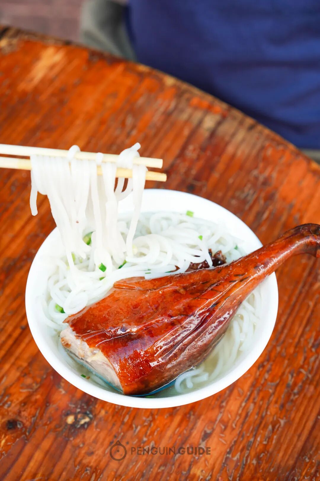 濑粉本没有味道,不少汤底甚至是清汤,全靠烧鹅丰盈的油脂和鹅汁提味,一口粉,一口汤,霸道的复合香料味在嘴里回肠荡气。