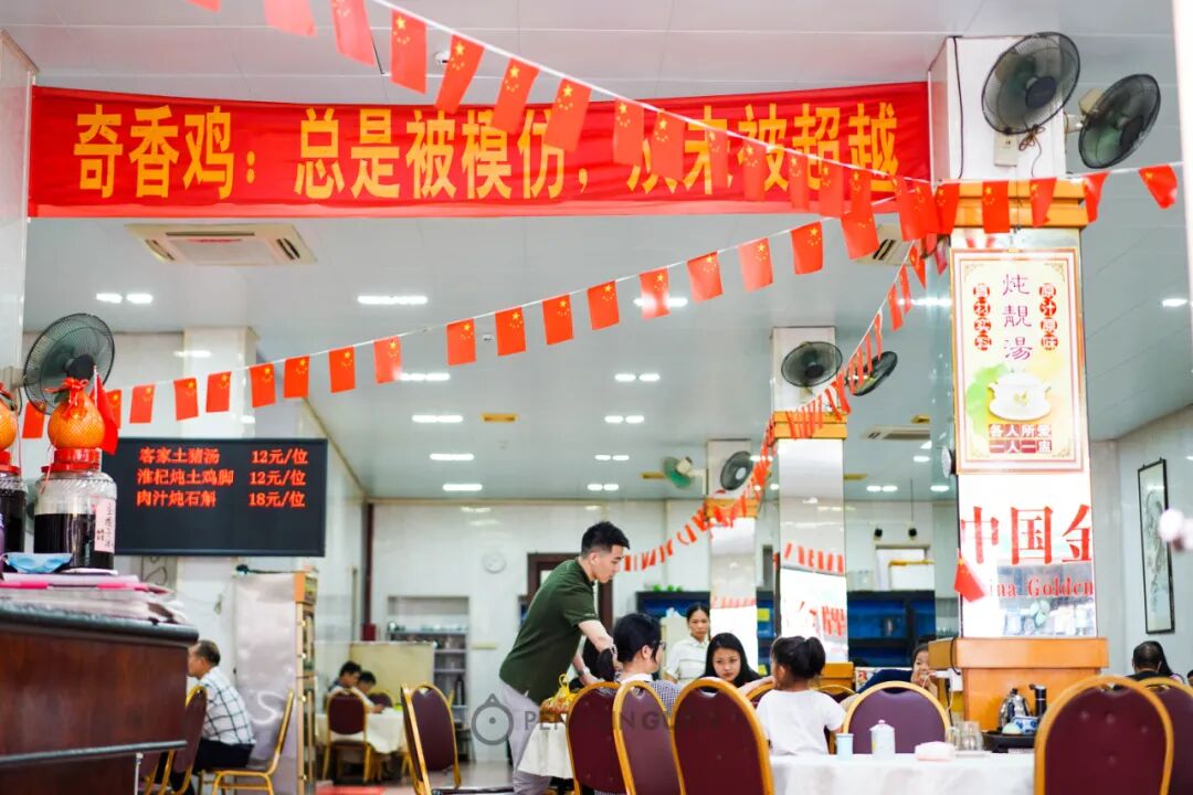每碟鸡都插着一面获奖小红旗,仪式感十足。