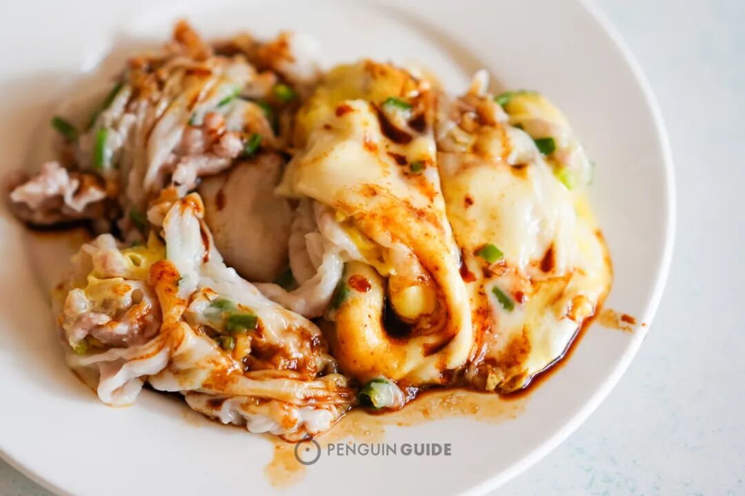 它的做法类似广州抽屉式肠粉,但粉皮更薄滑,浇的也不是普通酱油。而是一勺点睛的烧鹅汁,这是东莞特有的味道。