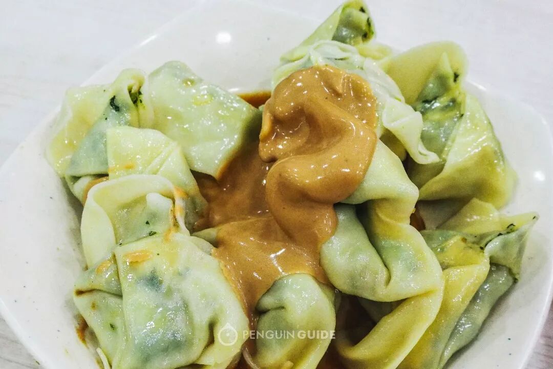 花生酱一入口就知道下了功夫,不稀不稠,淋在光滑的馄饨皮子上,泛出奶油的质感,脑海中不禁闪出一句广告词,“如丝般顺滑”~