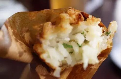 待炸至金黄色,香喷喷地可勾人食欲了。咬上一口,更是外焦里嫩,一边怕烫嘴一边却完全停不下来。曾是我学生时代放学路上最爱的美味。