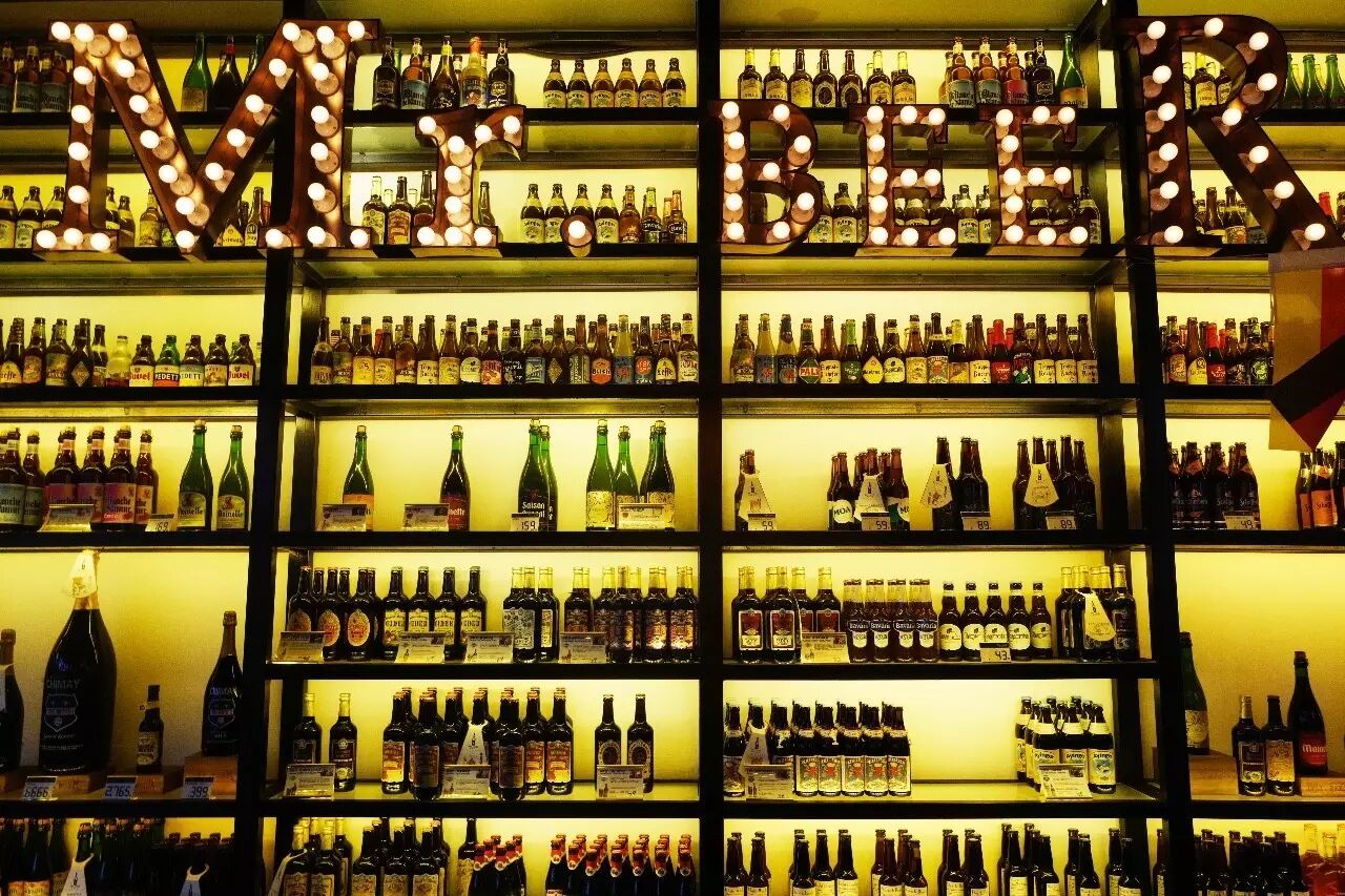 Mr. Beer总店在成都,上海这家是年初开的新店。进店后首先映入眼帘的是满墙的啤酒,店内有数百种瓶啤,大多来自比利时,并且都有自己对应的杯子。装修主要以木质桌椅为主, 也不乏一些啤酒有关的装修细节,瓶盖、空瓶的装饰随处可见。