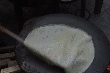 然后去喝碗“热粥”:完全颠覆南方人对粥的理解——是用小米和黄豆打出的浆,熬成的糊。