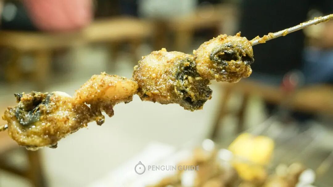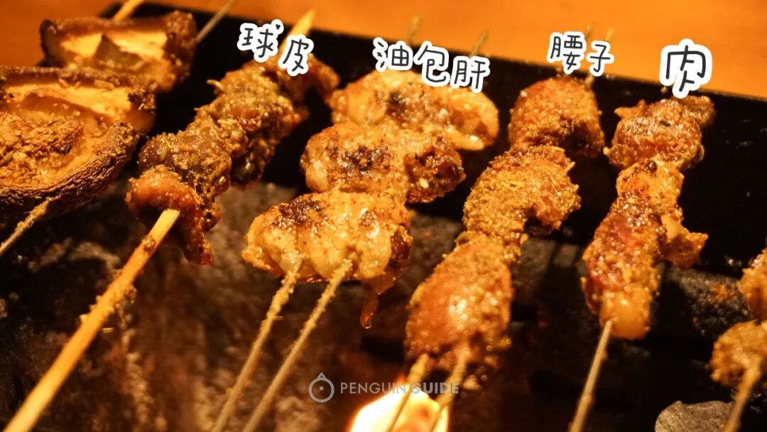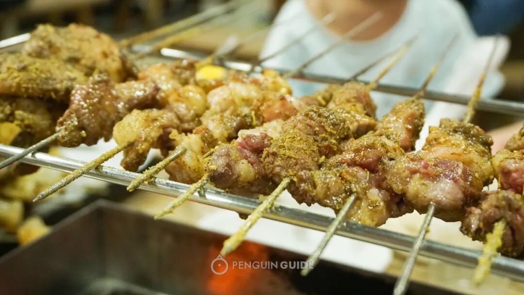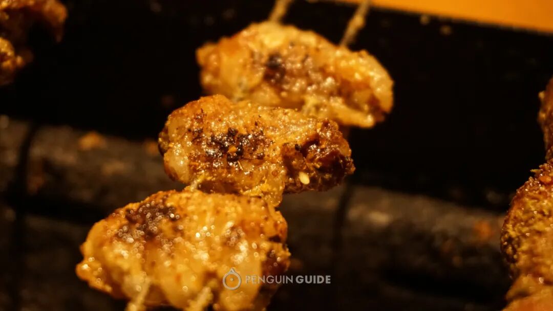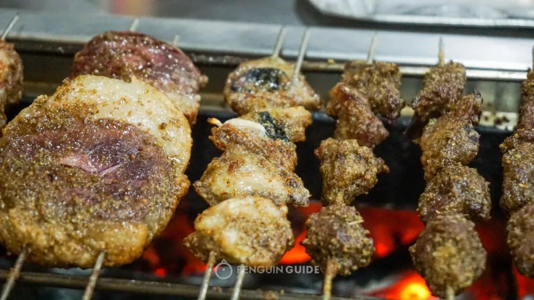 烧烤是华丽的高潮,精细程度不输日本烧鸟馆。各种部位在炙热的炭火上滋滋骚动,是夜晚里隐秘的刺激,看看,下面的部位你能认出多少?