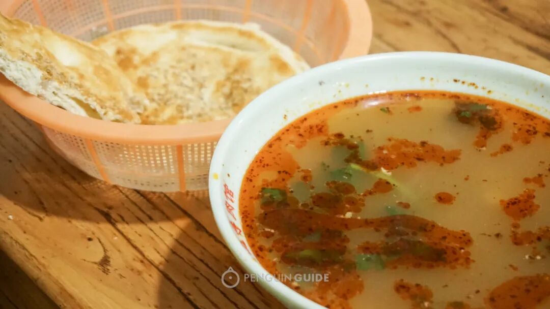 每家羊肉馆子配汤的饼几乎都不一样,有的用长方形的“缸贴”,刚出缸的外壳脆得咯吱咯吱响。