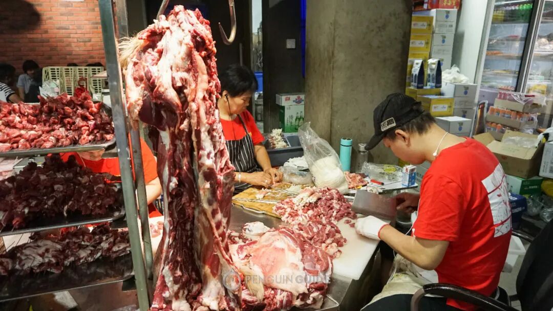 在徐州,烤羊肉是鲜肉现切现串的。切肉现场莫名引起舒适。