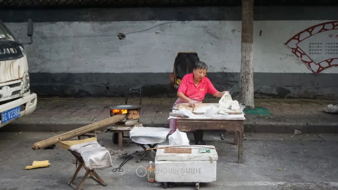你可以起个大早,去逛附近的小巷,可能每隔几十米就能围观一个阿婆做烙馍。
