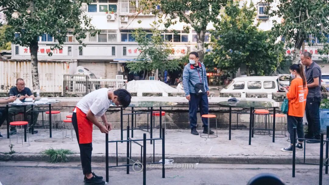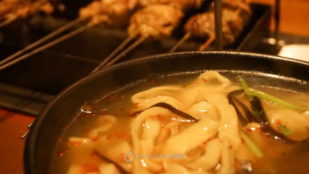 再环顾四周:几乎每张桌子上,都有一碗手擀面,是徐州标志性的烧烤伴侣。