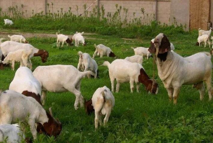 棕色头的就是波尔山羊,辨识度很高。