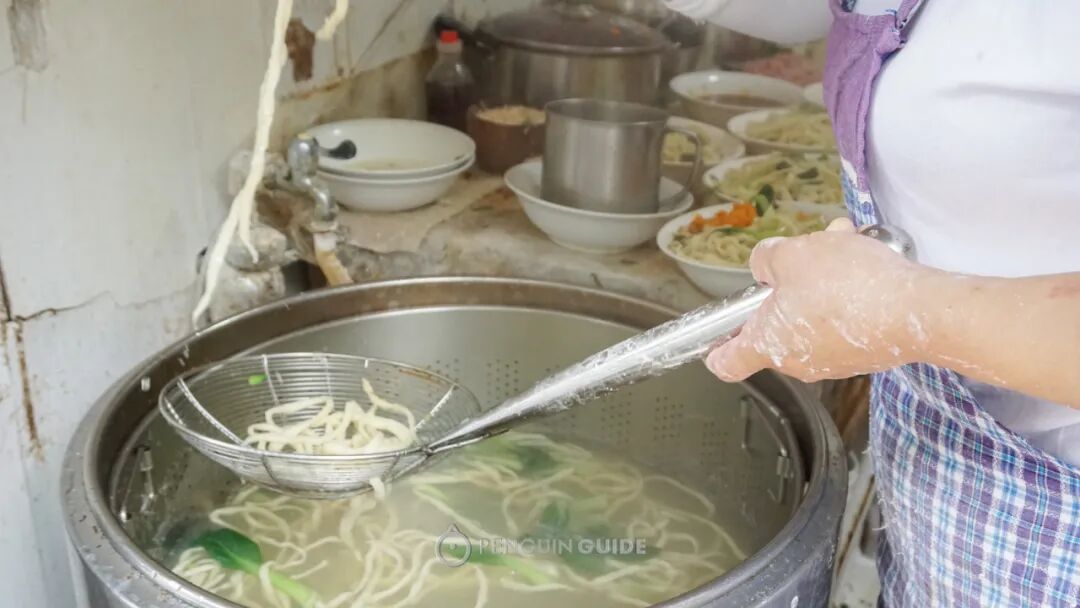 调味自然是好吃的核心所在,碗底是阿婆的秘制肉酱,最后浇上一勺骨汤,每一寸面条都完美上味。