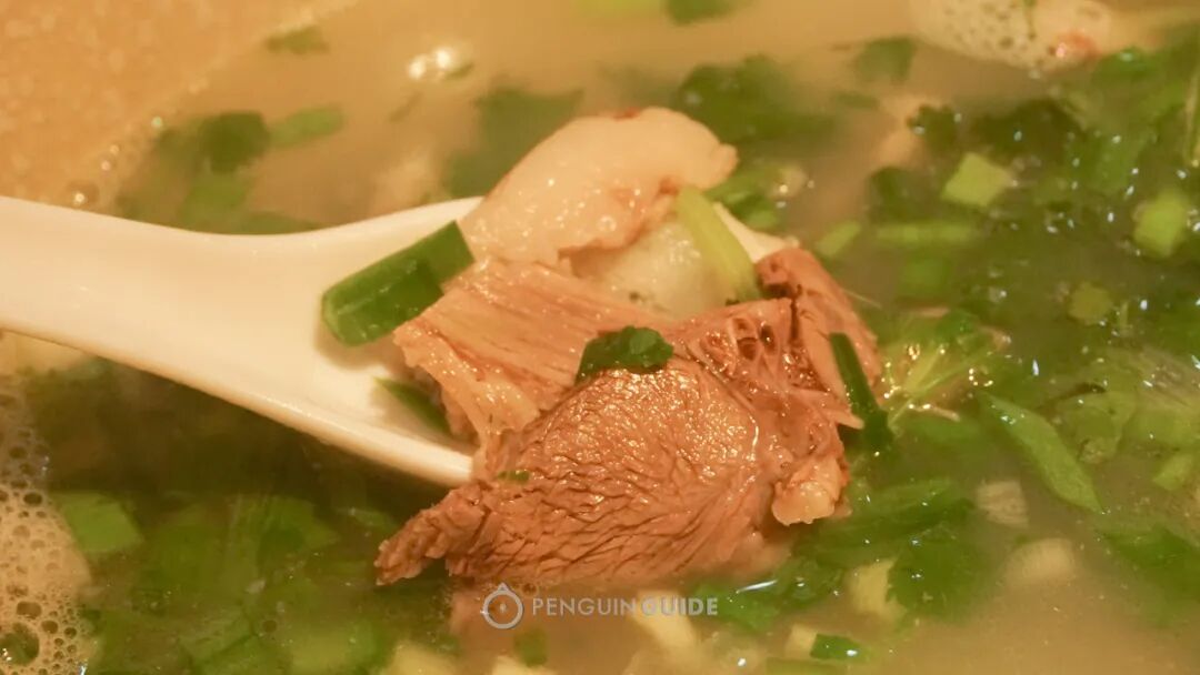跟别家清水煮羊不同,他家煮羊肉时放了花椒,算是个非常讨巧的小心思。虽说羊肉本身膻味轻几乎不需要去腥,但花椒还是极大地丰富了鲜味的层次,就算不放辣子,汤体本身也有足够的回味。