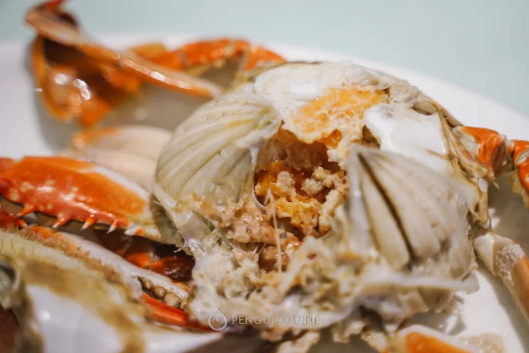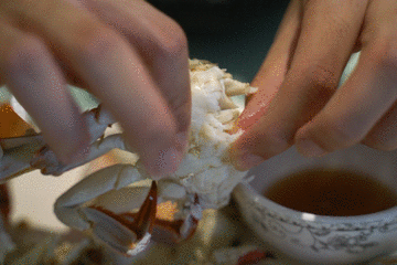黄蟹一拆开,黄澄澄美滋滋的蟹膏就蹦了出来。蟹膏有着细腻的颗粒,在舌尖轻轻摩挲着,好满足啊~