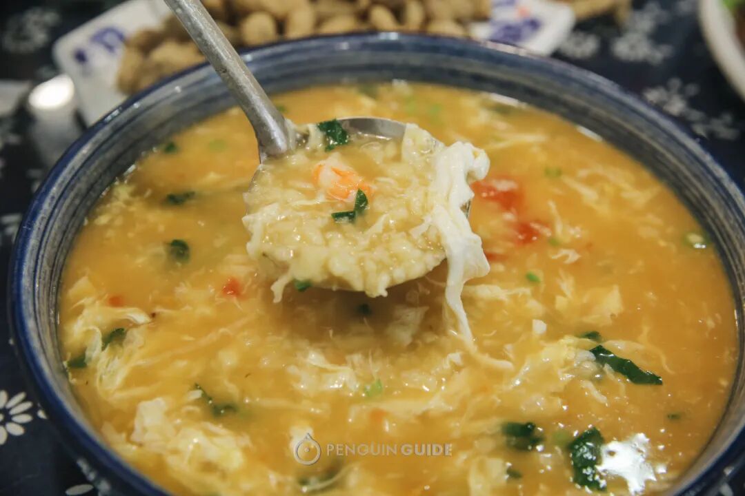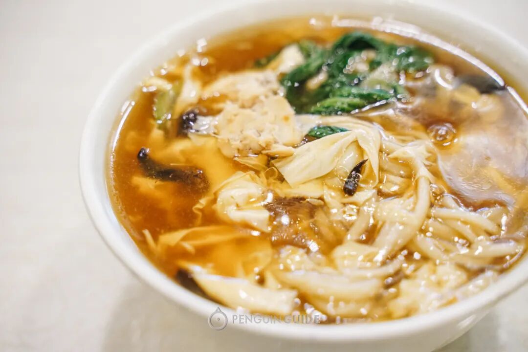 和一般的打卤面不同,它的汤汁很多,澄澈又粘稠,同时有着鱼和鸡的鲜味。
