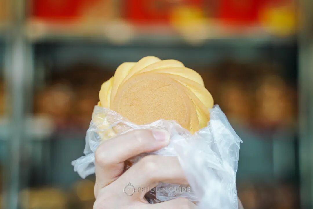 杠子头是烟台甜食里的颜值代表,平滑的圆饼边缘,砍出了规律的花边,好精致!