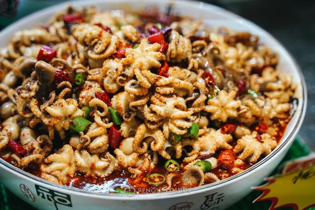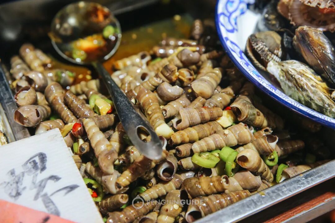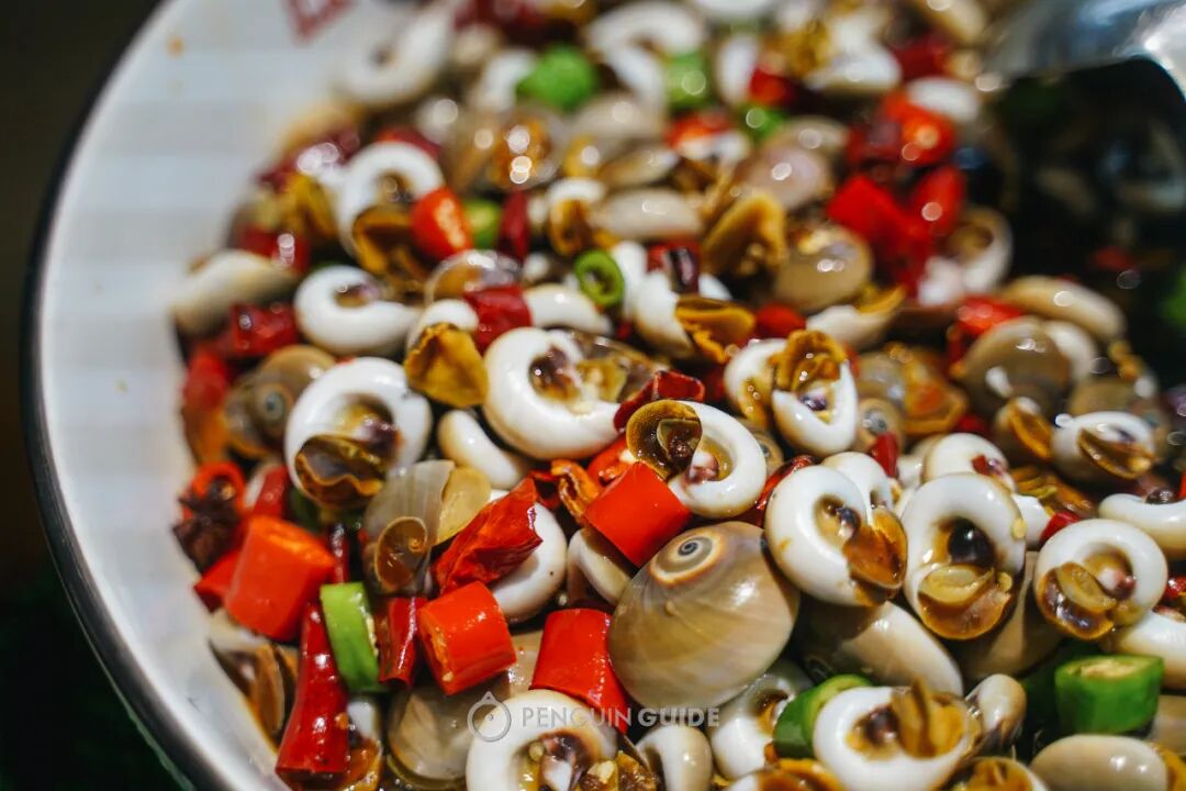 长得像钉子一样的锥螺,牙签根本戳不到,只能靠嘴吸。吸锥螺的时候,先是香辣打头阵,再是弹嫩的口感,爽感高度集中在舌尖,根本停不下来。