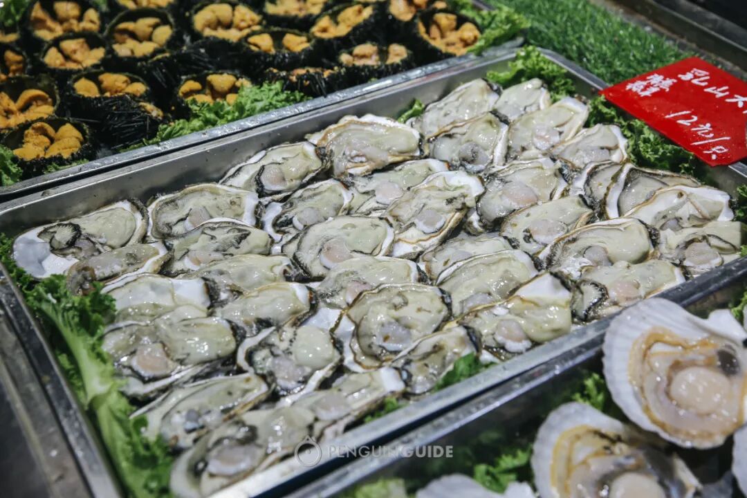 在烟台的烧烤摊上,你会发现各种海鲜,烤生蚝、烤扇贝是基础操作: