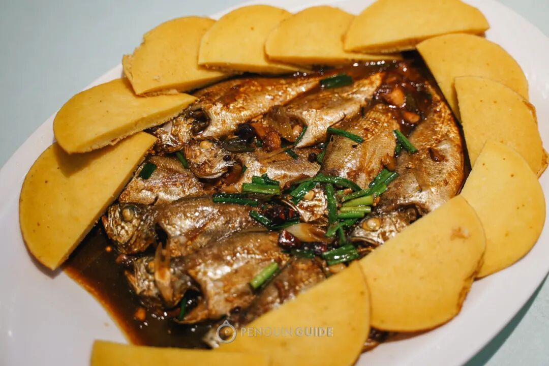 鱼在烟台,还有个很顶的做法——鱼锅片片。甭管什么鱼,一顿酱焖。再在铁锅边上贴一圈玉米面饼,和鱼一起出锅。