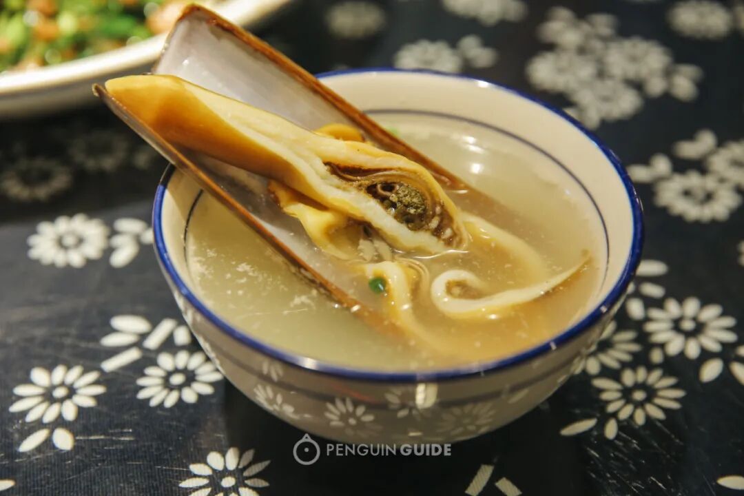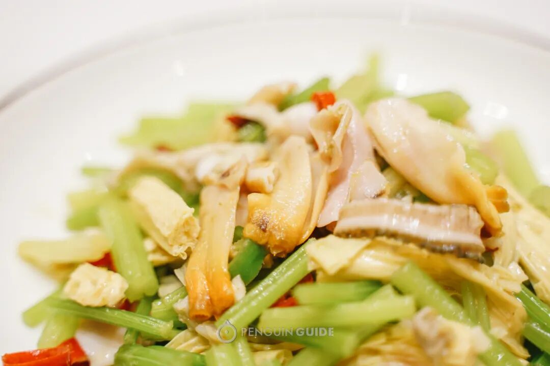 温拌能最大程度地保留贝类的鲜味和韧劲。这两种贝类口感很接近,鸟贝软嫩一些,天鹅蛋则更有嚼头,吃起来好爽好爽!