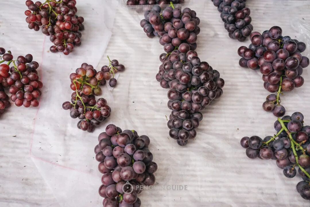 除了酿酒葡萄,直接食用的葡萄也很出色。现在去水果摊,能一次吃到三种品种:香气浓郁的小串玫瑰香,酸甜平衡的大串巨峰,还有甜度爆炸的糖豆。