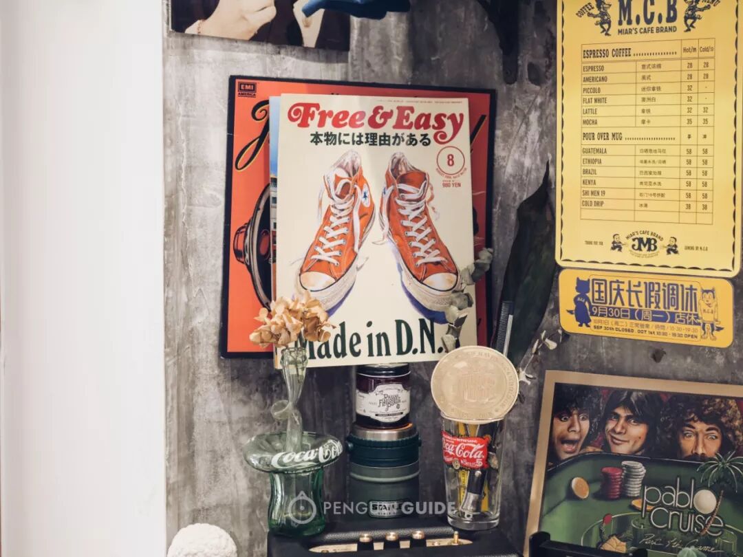 所以你能在店里发现各式各样复古的小物件,比如可口可乐的水杯,吧台上的迷你游戏机,就连夫妻两人的穿搭也十分戳人。同去的摄影师,进店呆了5min不到就没忍住问店主要起了衣服链接!