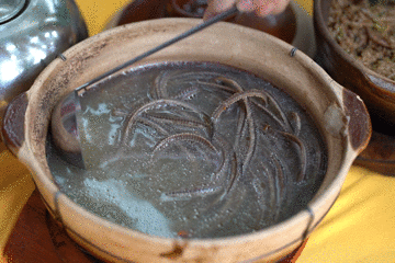 当地人更喜欢体型偏小的鳝,爱其肉质细嫩,恨其骨多肉少,不惜一条条手工去骨拆丝,吃起来有啖啖肉的满足感。