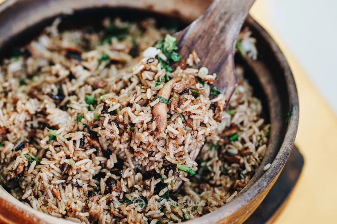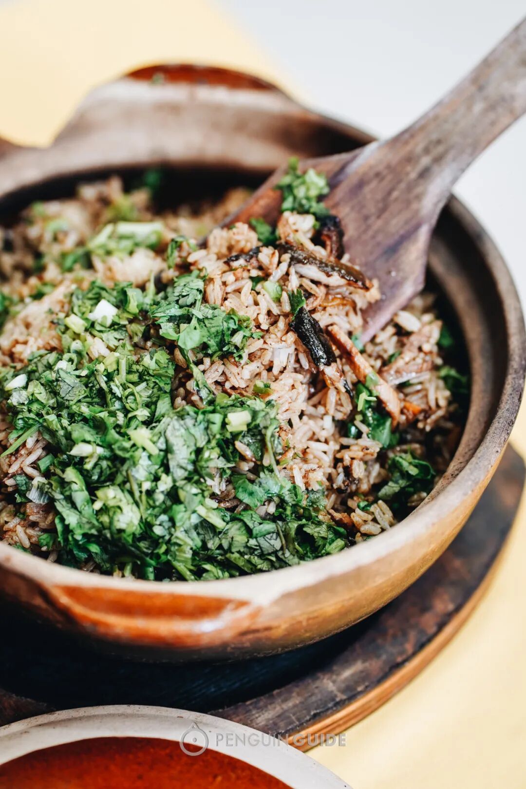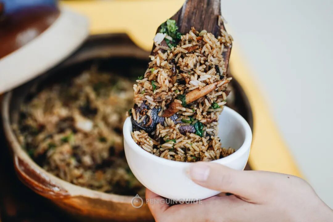 这家店用了台山的丝苗米,比广州常见的籼米还要细长一些,煮出来的饭粒粒分明,干爽不拖沓,瓦煲一焗,有种近似于炒饭的焦香。