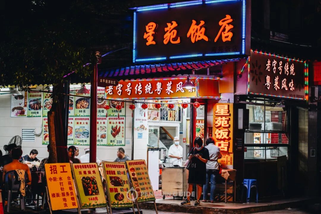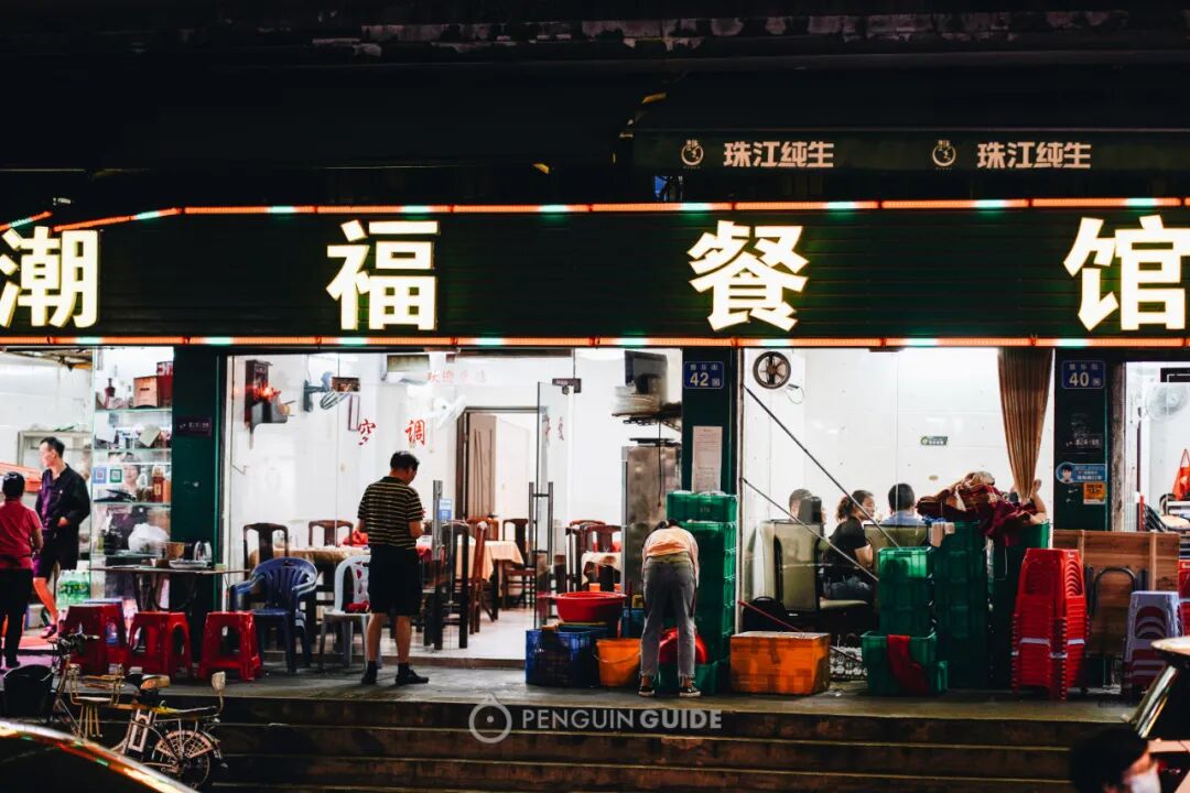 这家店少说也有几十年历史,菜单上有很多怀旧粤菜,是街坊们的日常食堂。夜宵特别旺,凌晨12点竟然还要排队等位,桌子直接摆到门外……